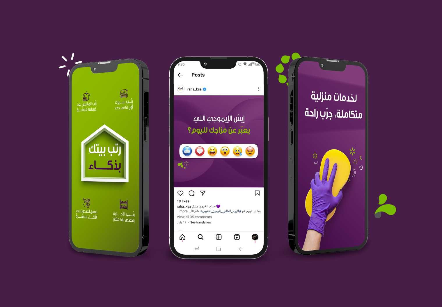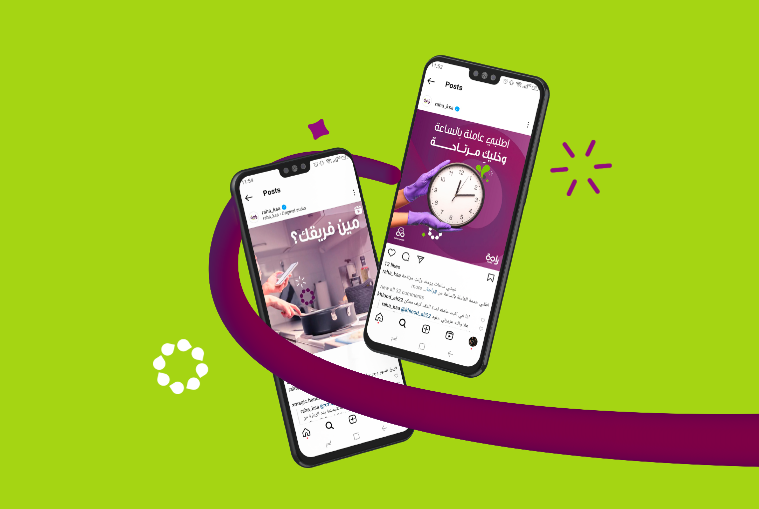 We all seek the most comfortable ways for ourselves and our loved ones, and here comes the role of “Raha” in offering flexible services that provide comfort to users, from housewives and employees to their children, seniors, and event services. To highlight this distinction, there was a need for a creative partnership with Meshbak to enhance Raha’s brand image among its audience and distinguish it from its competitors.